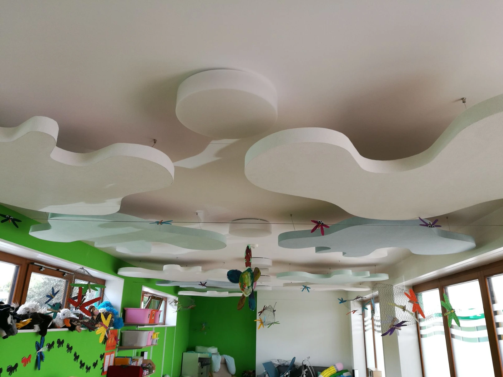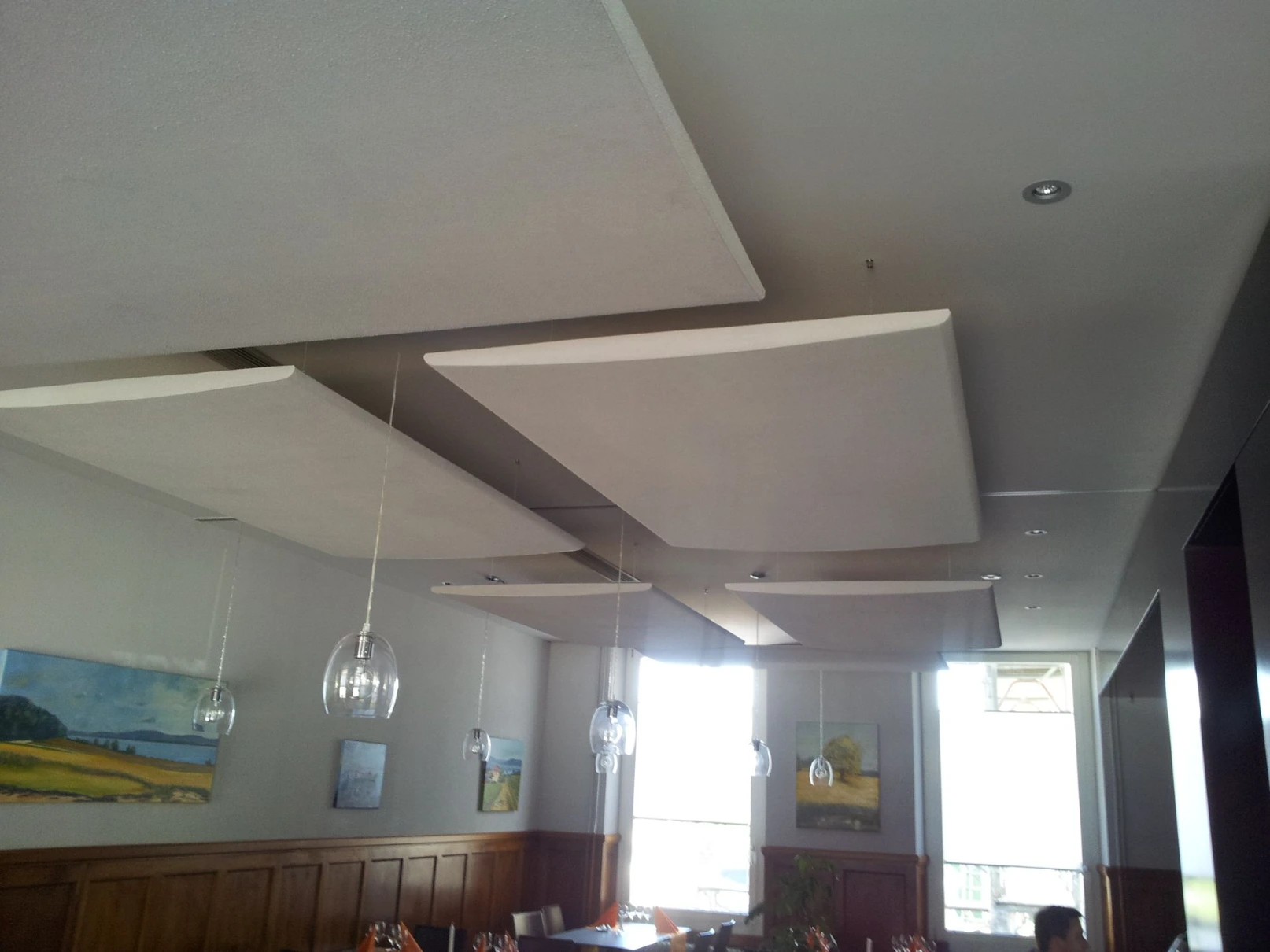 - Baffles suspendus au plafond (réduction réverbération salles de classe)
