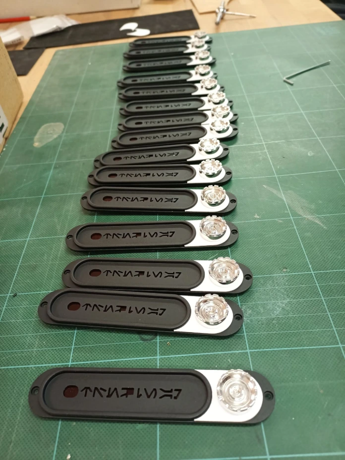 - Tableaux de commandes : pièces avec texte en alphabet Aurebesh (Star Wars), boutons et détails en aluminium usiné