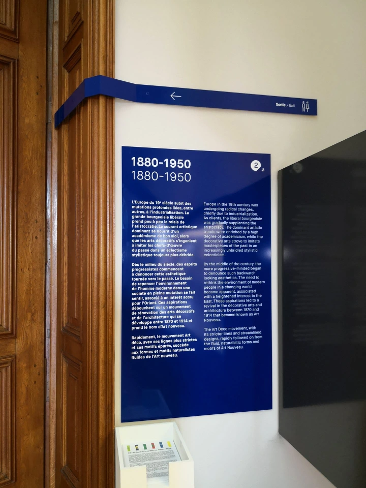 - Panneaux de présentation de salles (description des collections)