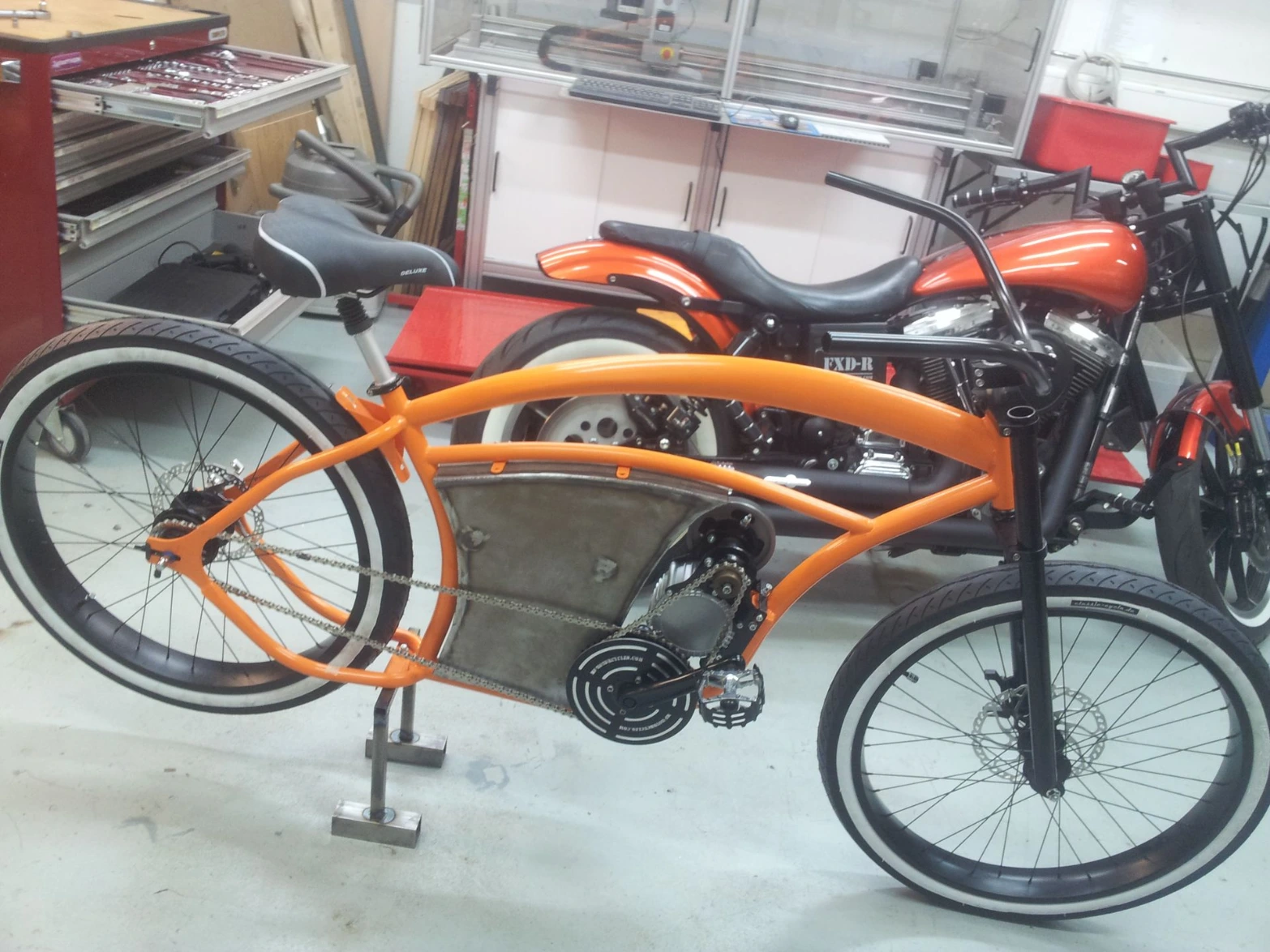 - Partir d'un cadre custom "beach cruiser" non prévu pour motorisation électrique