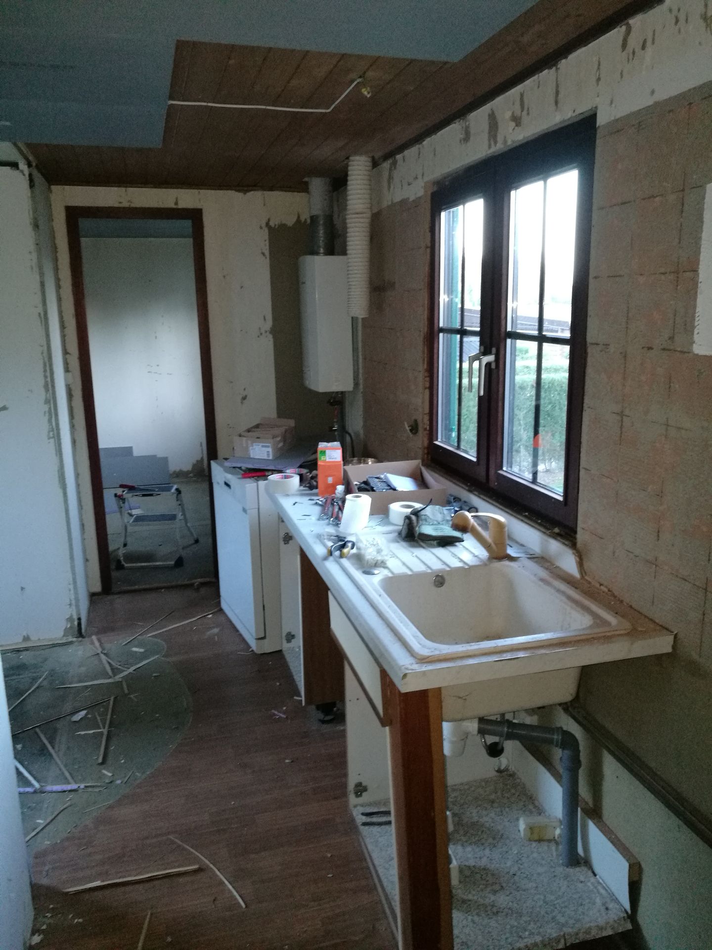 - Démolition complète de l'intérieur (cloisons, revêtements, installations)